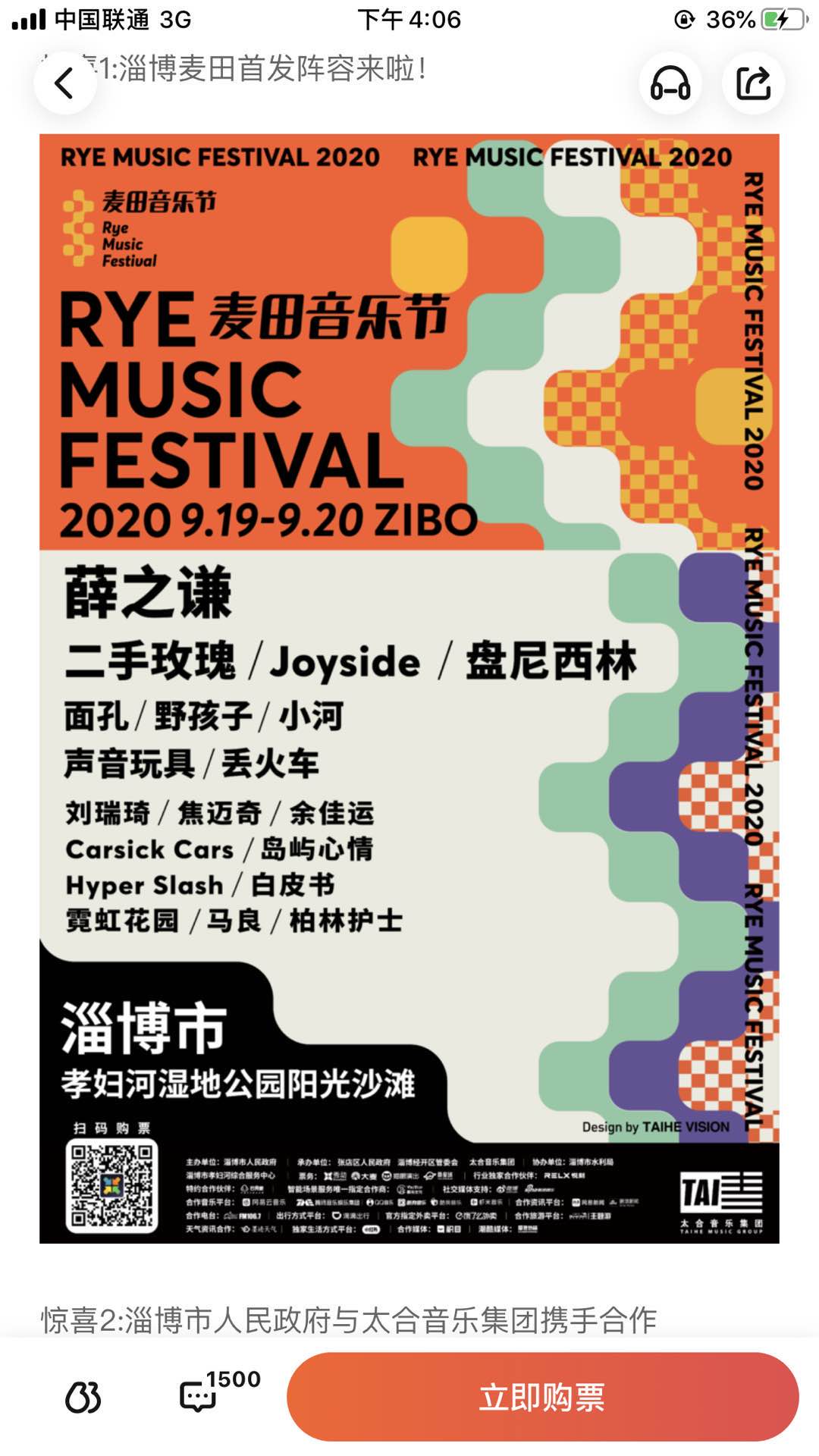 从麦田音乐节盲鸟票预售数量太少,就开启了火爆模式,微博上网友爆出了参演的乐队,让网友们惊叹阵容太豪华了!