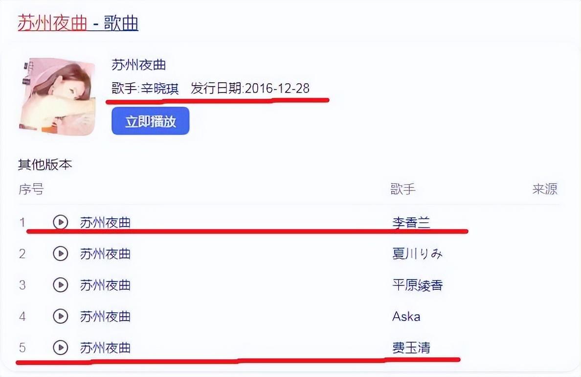 笔者检索了一下,确实能够轻松找到费玉清翻唱的《苏州夜曲》,辛晓琪翻唱版本也在网络上可以收听和下载。