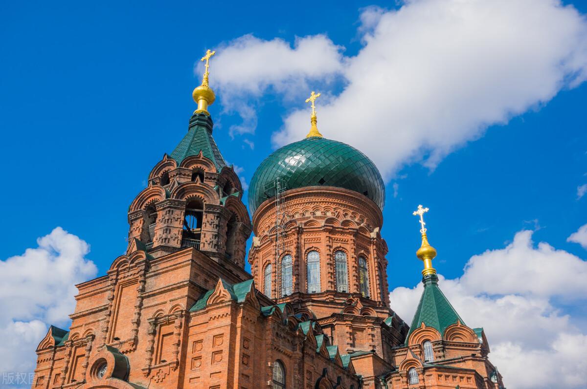 圣索菲亚大教堂是哈尔滨的著名地标,也是中国目前保存最完整的拜占庭式建筑。可以在外面拍照打卡,也可以进入内部参观(需要购买门票),绿色的洋葱头式大穹顶十分醒目,满满的异域风情。