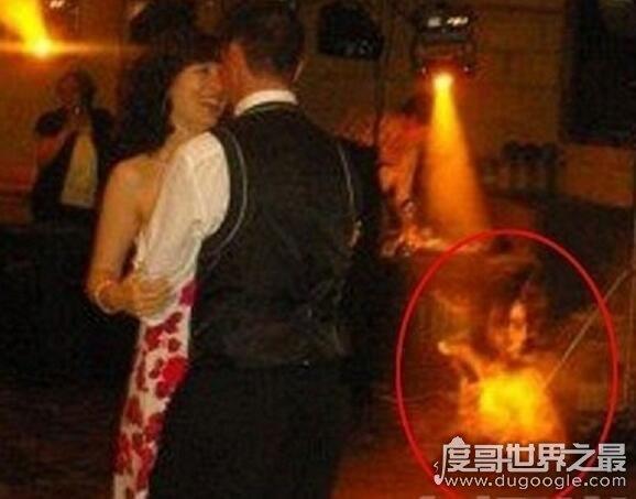 英国一名男孩2008年8月给一对新人拍摄婚礼照,几天后当他在电脑上浏览照片时不禁大惊失色——照片上竟然有一个神秘“鬼影”。12岁的乔丹参加一个婚时用数码相机给新娘新郎拍了一组照片。回家后其中一张照片引起了他的注意:照片的右下角距离新郎几厘米的地方有一个模糊影像,可以分辨出这是一名妇女的头以及上半身。丹的母亲安妮不相信世界上有鬼存在,但她无法给出合理的解释。