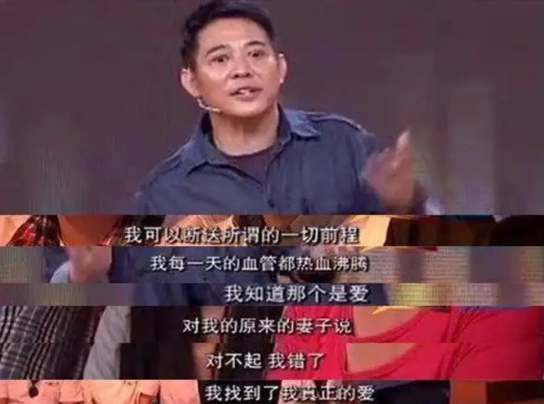 可当这番话大剌剌地从已婚的李连杰口中说出时,观众们惊呆了——出轨就出轨,还说得那么清新脱俗?