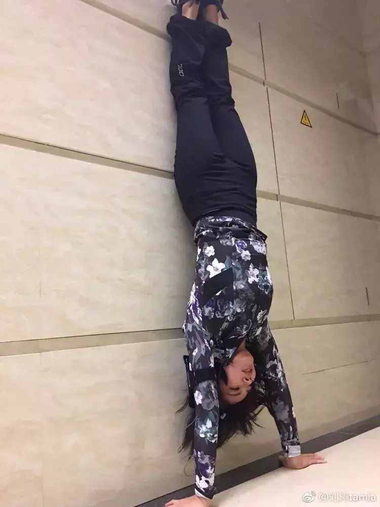 在拍戏很忙的时候,刘涛就会利用等戏的空闲时间,练练倒立和平板,她说:“觉得很放松,练一会感觉眼睛都亮了。”