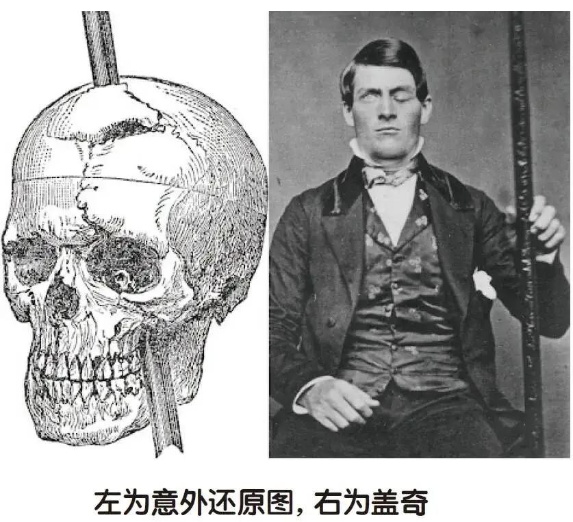 12年后,盖奇因为癫痫去世,而当医生们解刨他的脑子后发现,他的脑子有一块叫做“前额叶”的脑区受到了毁灭性的损伤,而这正是致使他性格大变的原因。
