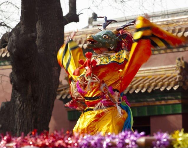看文字叙述太难?没关系,类似的仪式在雍和宫也有举办,就是老北京人津津乐道的打鬼。传统每年农历的正月底,雍和宫内人头攒动,都会争睹这一“打鬼”的场面。