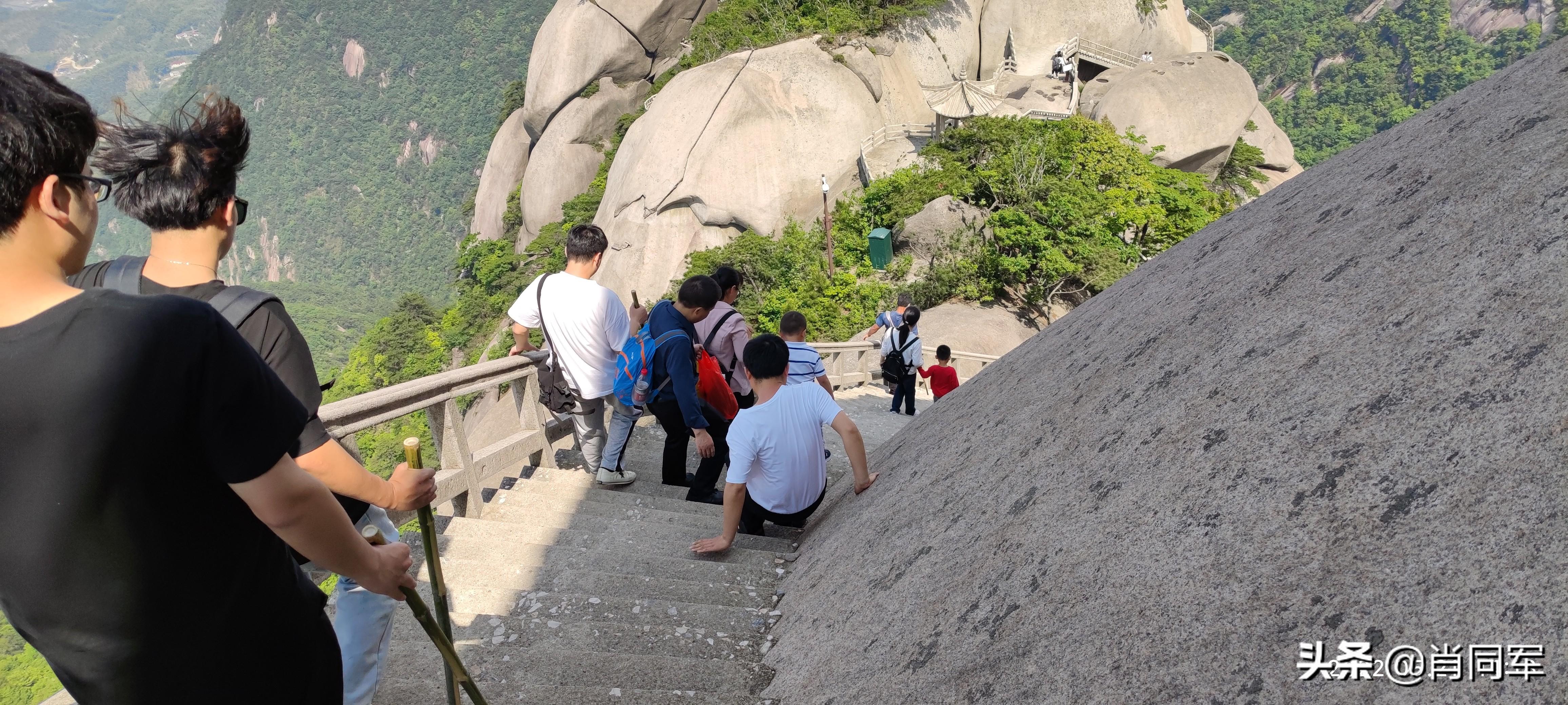 下坡台阶极陡峭,恐高的游客贴地而行