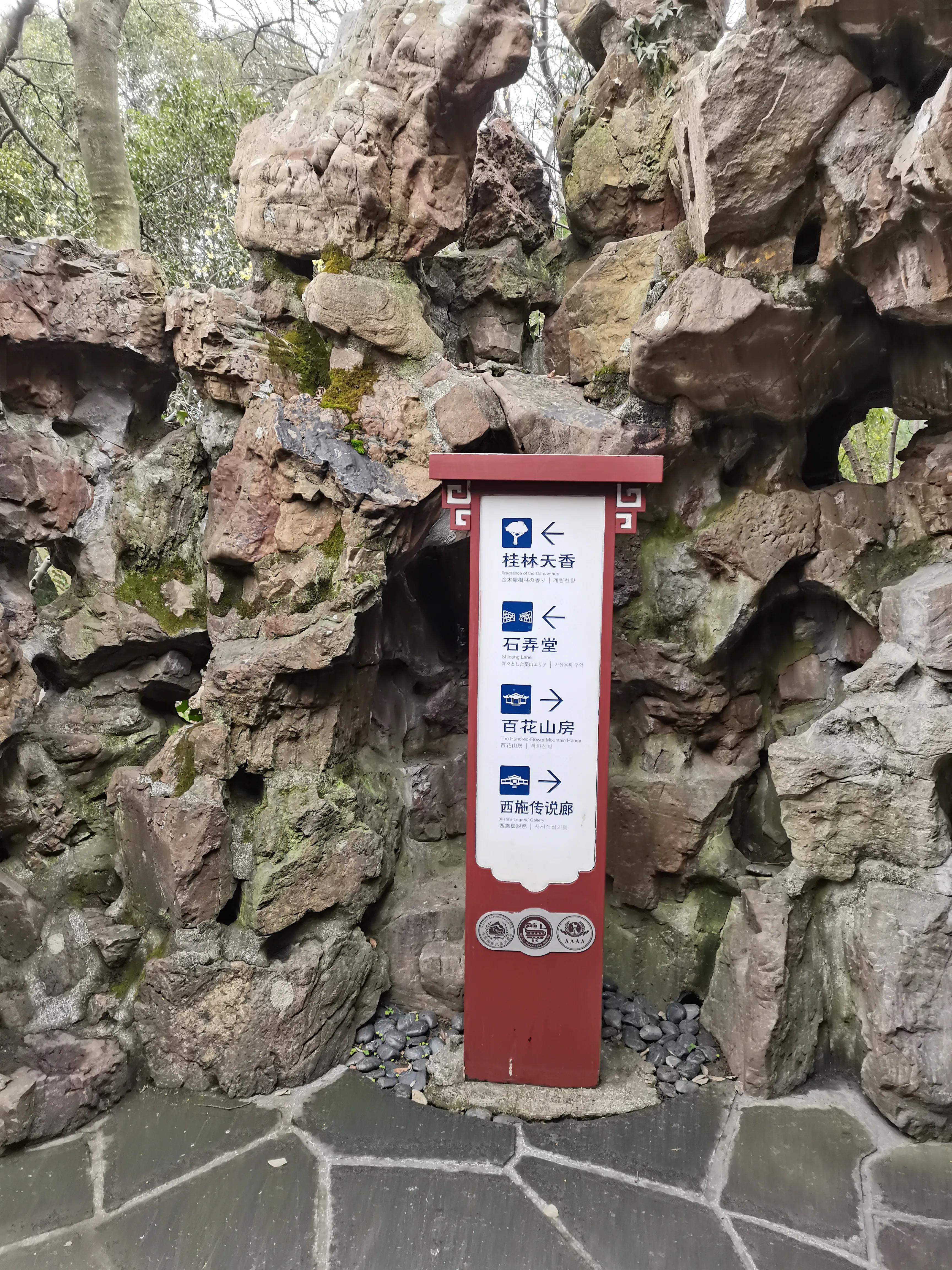 从正门进来以后就是地点导览,我们从右边开始游览,右拐就是一个假山开辟的道路。