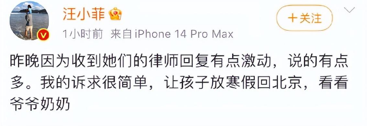 汪小此前曾多次透露大S不愿带着孩子跟自己来北京,还公开怒怼大S为了不让两个孩子放寒假回北京给自己发律师函。